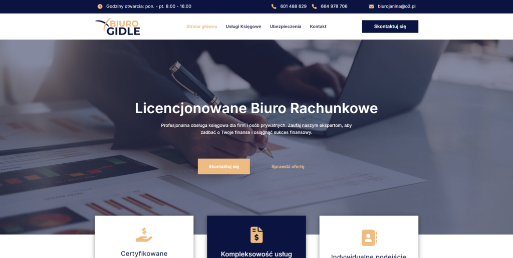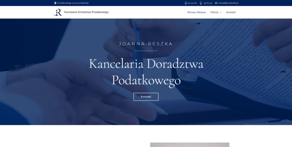 Strona internetowa jest zawsze dostępna dla klienta i jest bardzo skutecznym pracownikiem, który przedstawia klientowi jasno ofertę